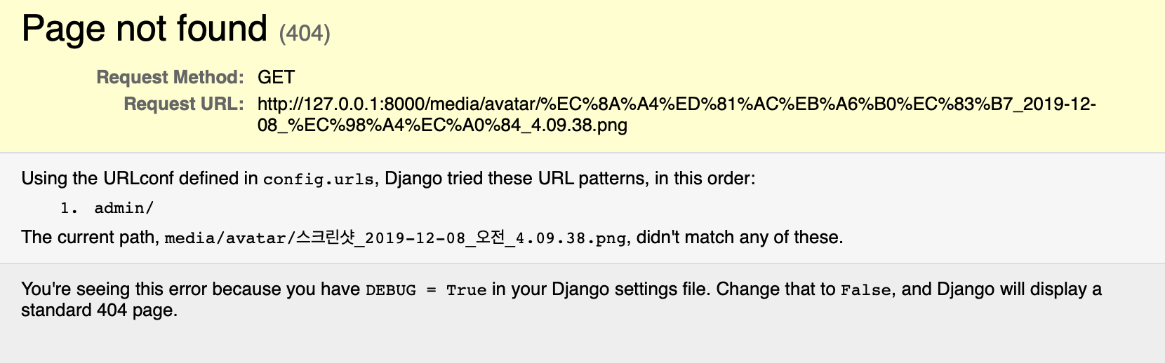 이는 장고가 에러가 났을 때 개발자를 위해 에러 페이지를 띄워주는 것을 말한다.